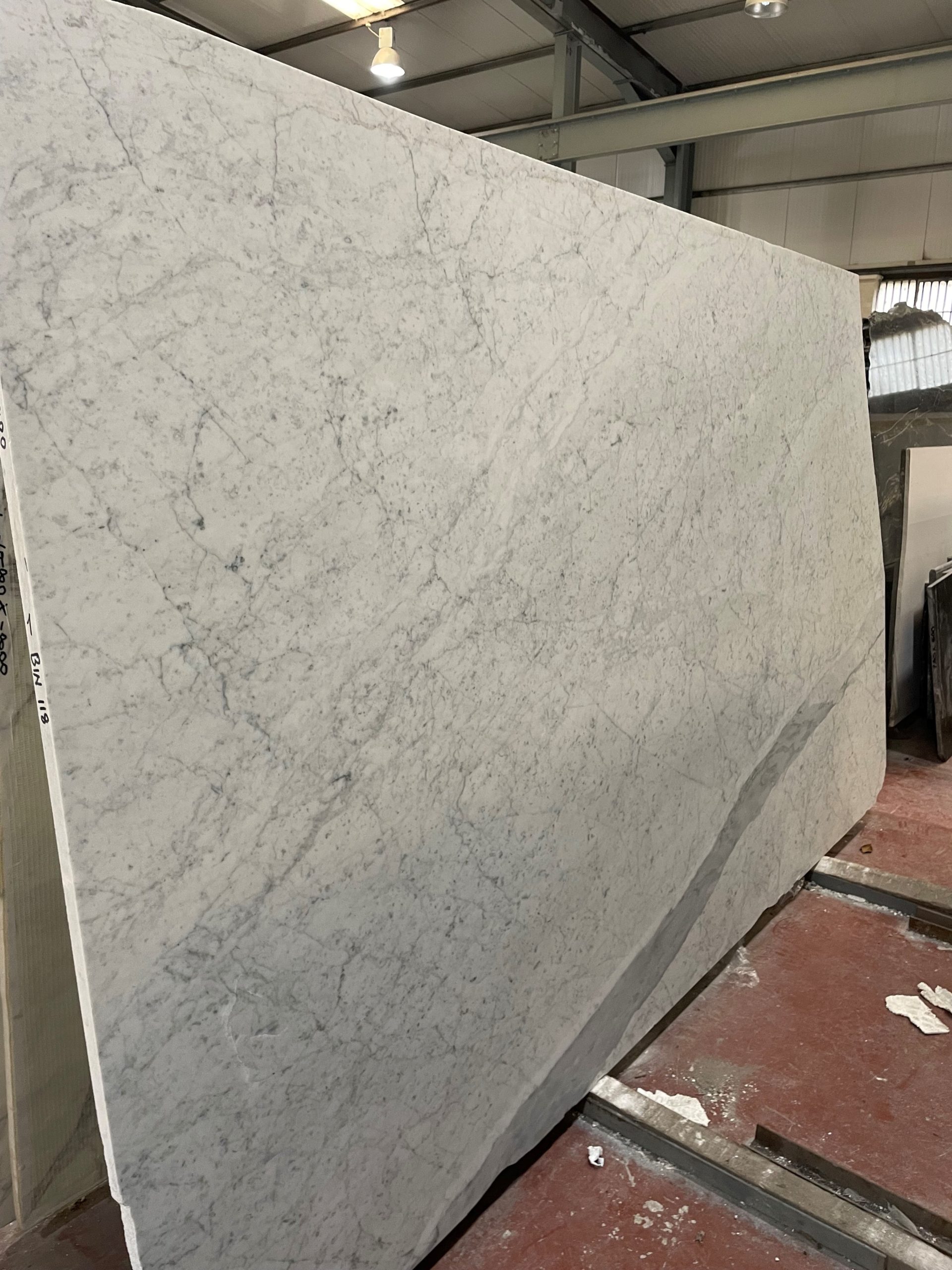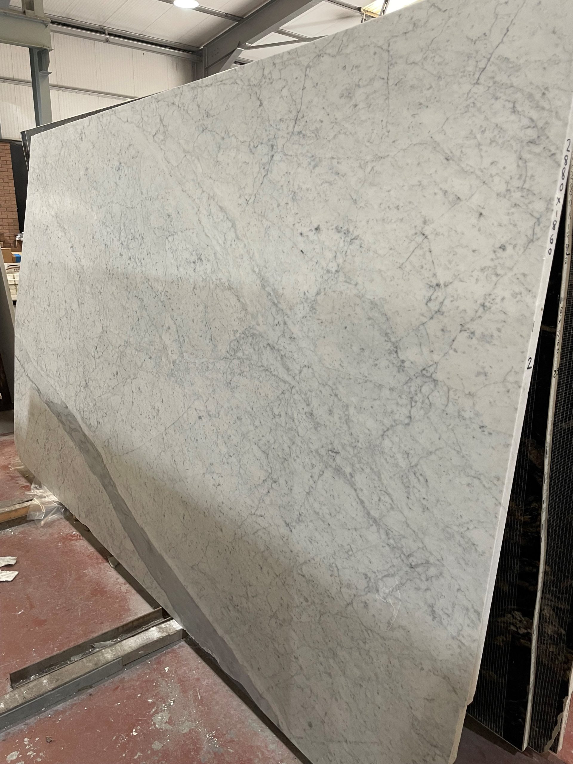 White Carrara Gioia (honed): A classic white marble with soft, fine grey veining scattered throughout. This marble is imported from Italy and is available in 20 mm and 30mm