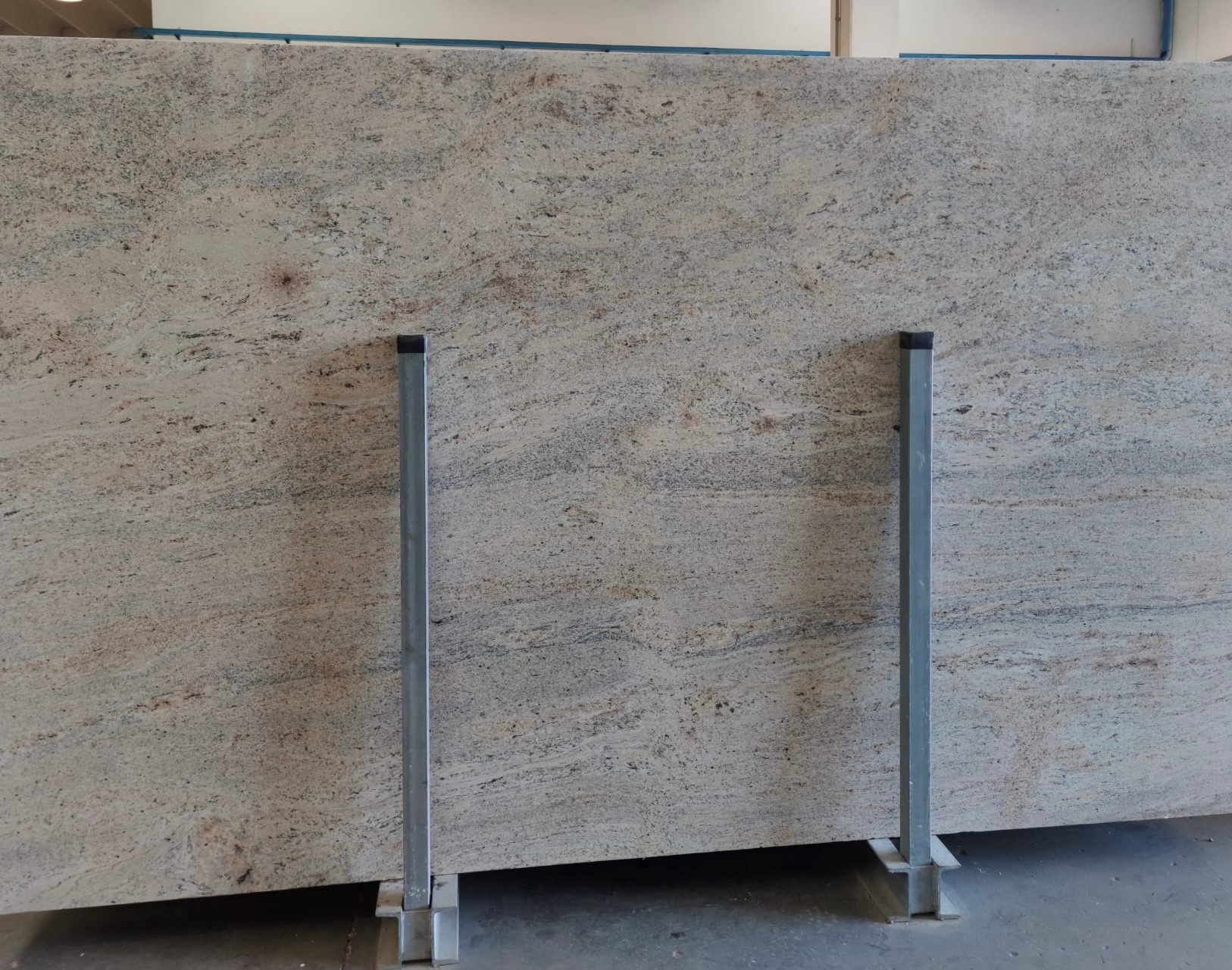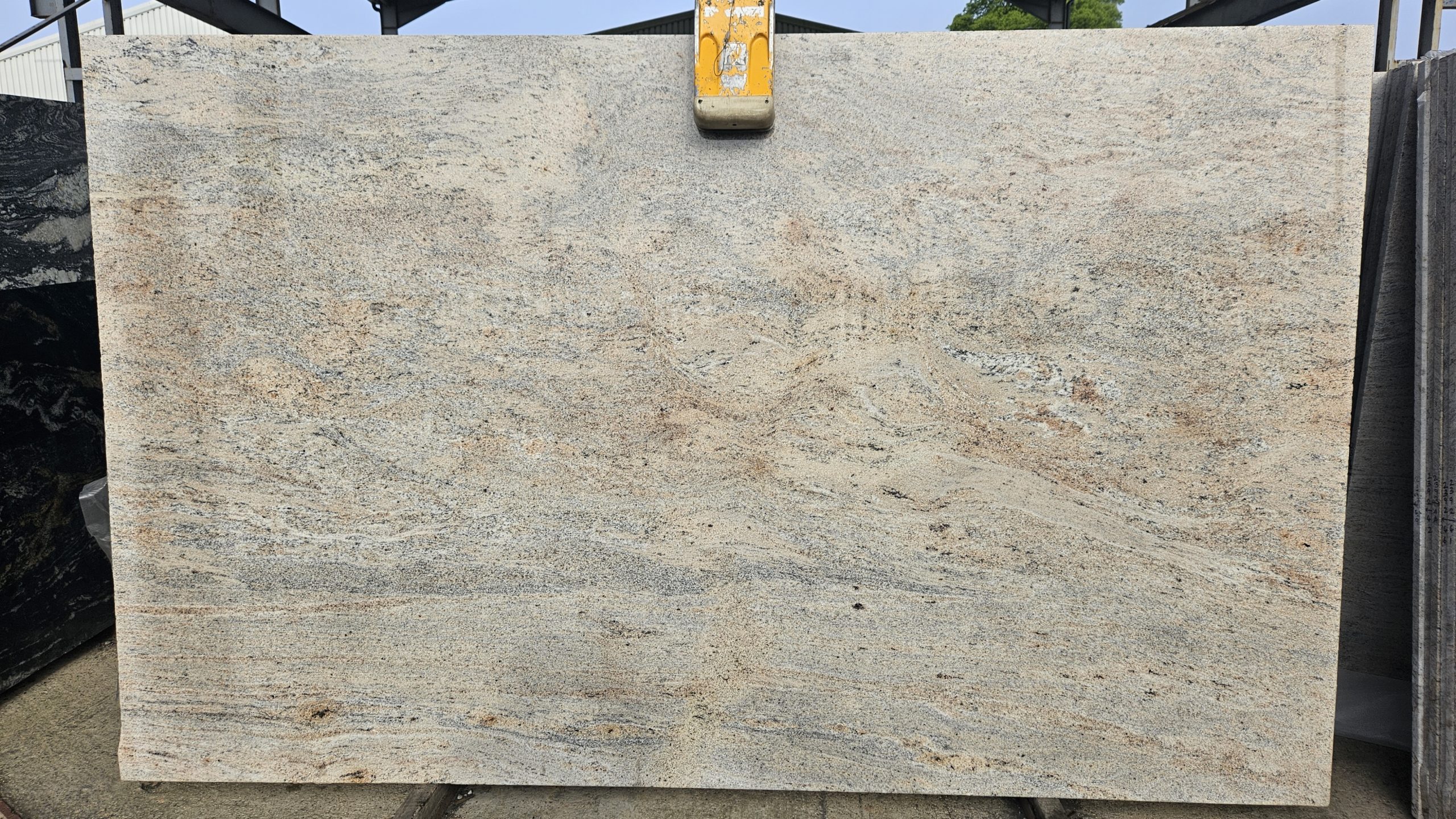 A subtle granite with warm Ivory veins swirling across the full slab.
