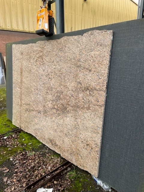 Giallo Veneziano: a warm stone with rich gold tones with a fine to medium brown grain, this granite originates from Brazil and is available in 20mm and 30mm.