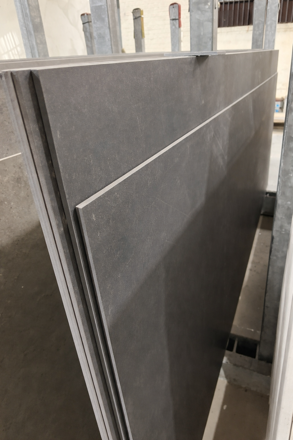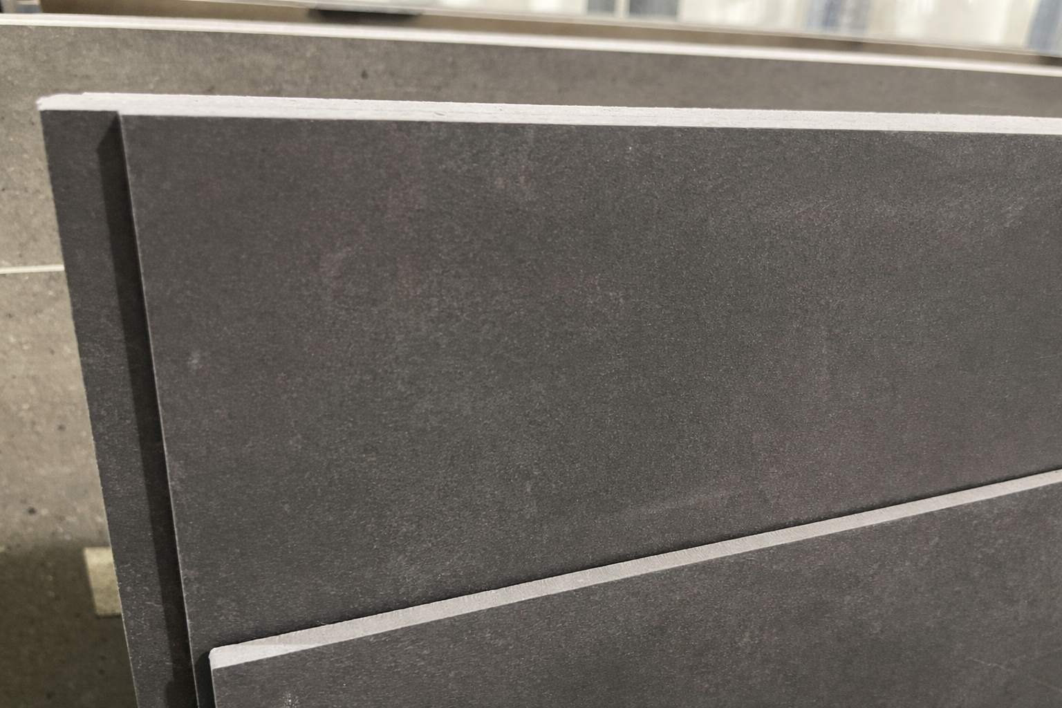 Graphite Soft: Dark graphite-grey ceramic with a soft, matte finish and subtle mineral texture. Part of our large Ceramic collection and is available in 6mm.