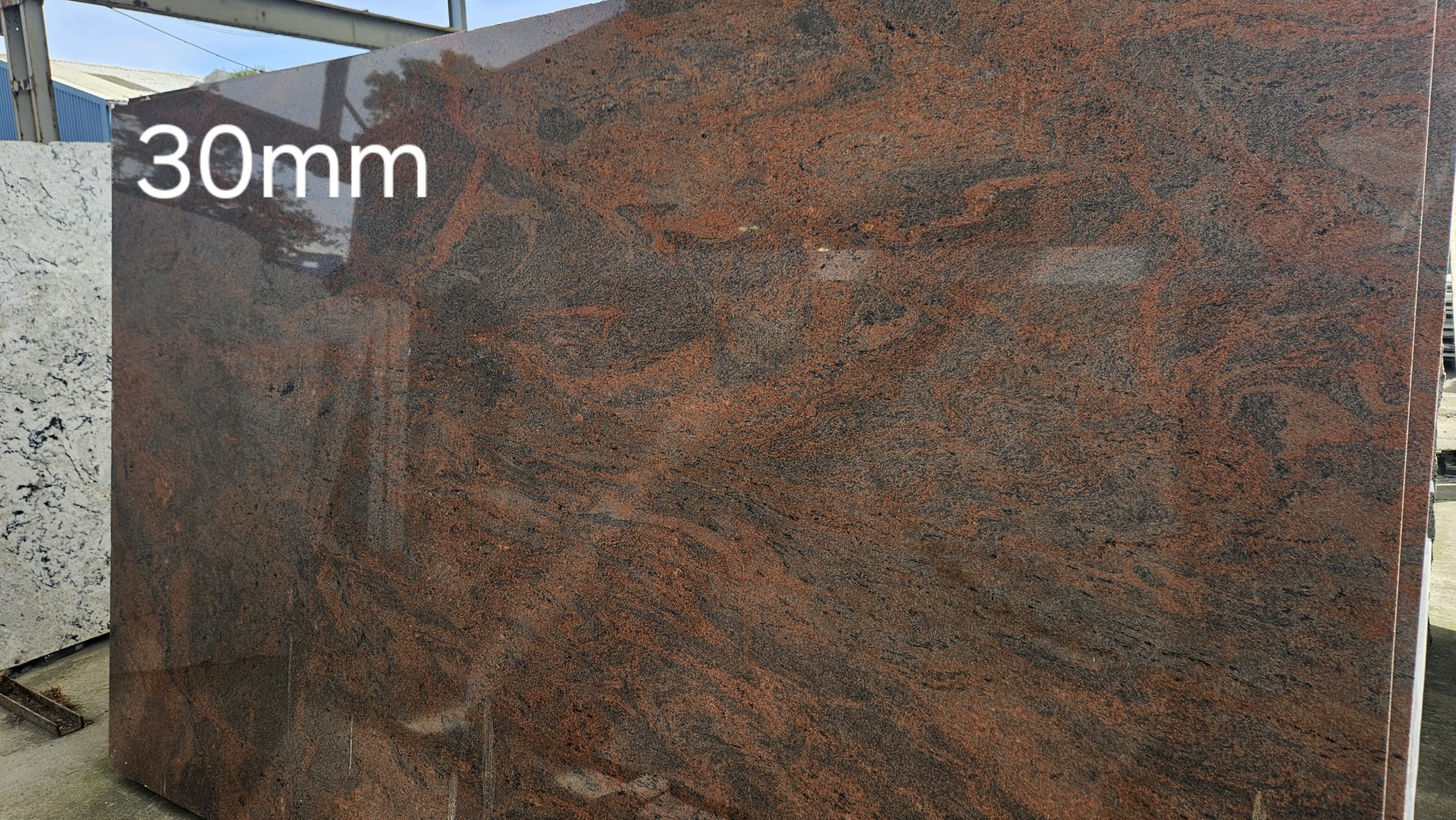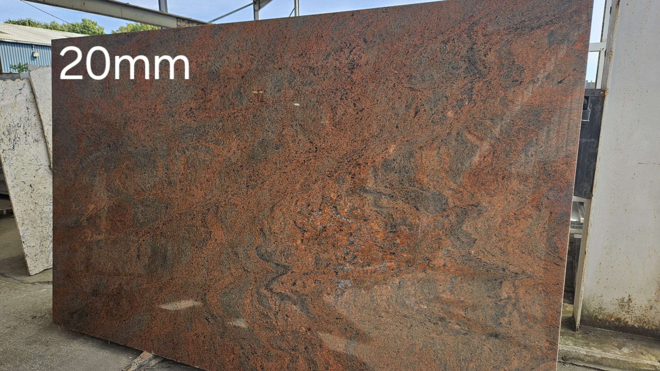 Multicolour: warm and rustic, deep reddish brown with charcoal and dark grey tones, this granite originates from India and is currently available in 20mm & 30mm slabs.