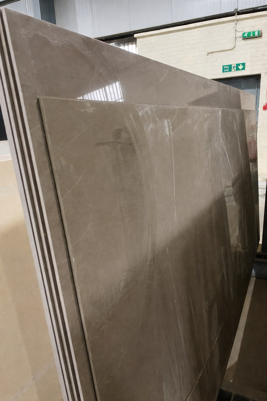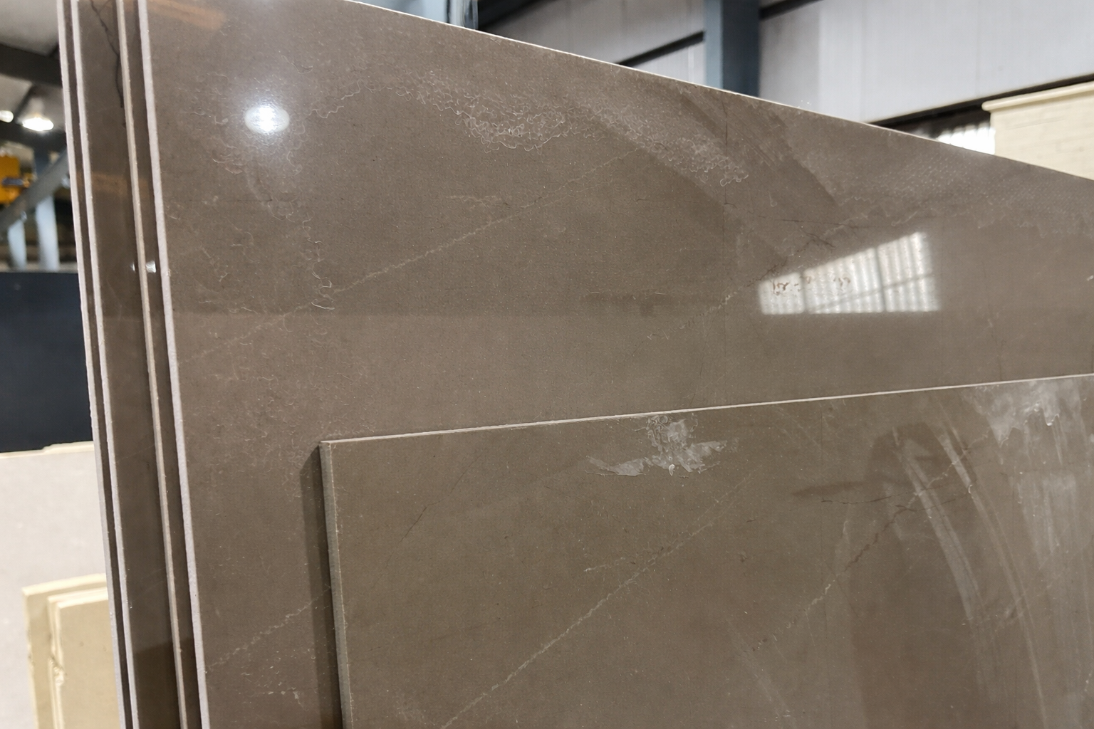 Pulpis Brown Shiny: A glossy brown ceramic with soft marble-style veining and subtle tonal variation. Part of our large Ceramic collection and is available in 6mm.