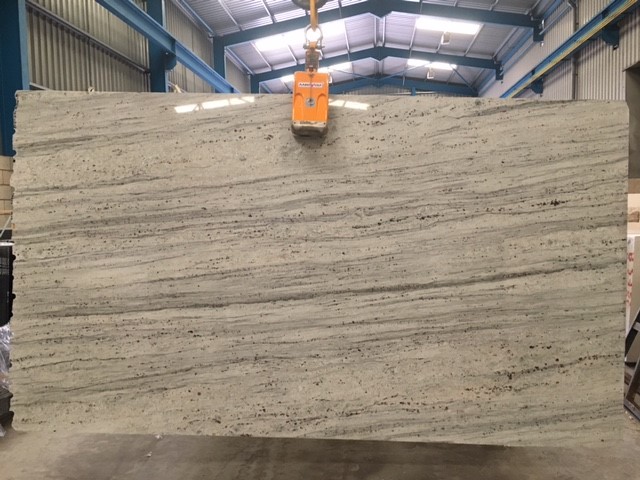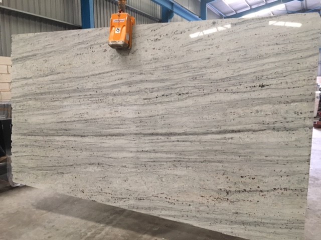 River White – soft white to pale grey with wavy veining and a subtle speckle, this granite originates from India and is currently available in 20mm & 30mm slabs.