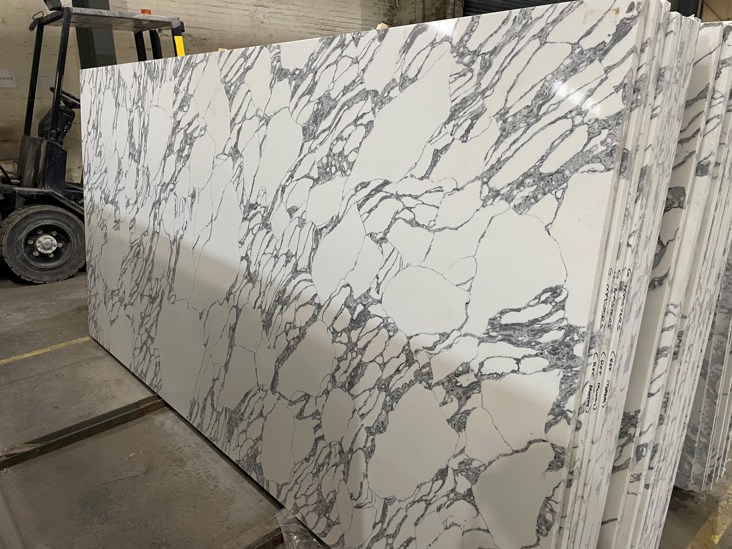Tuscan Arabescato: A bright white quartz with bold, flowing grey veining that mimics natural marble. This quartz is part of our popular Tuscan range and is available in 20mm and 30mm.
