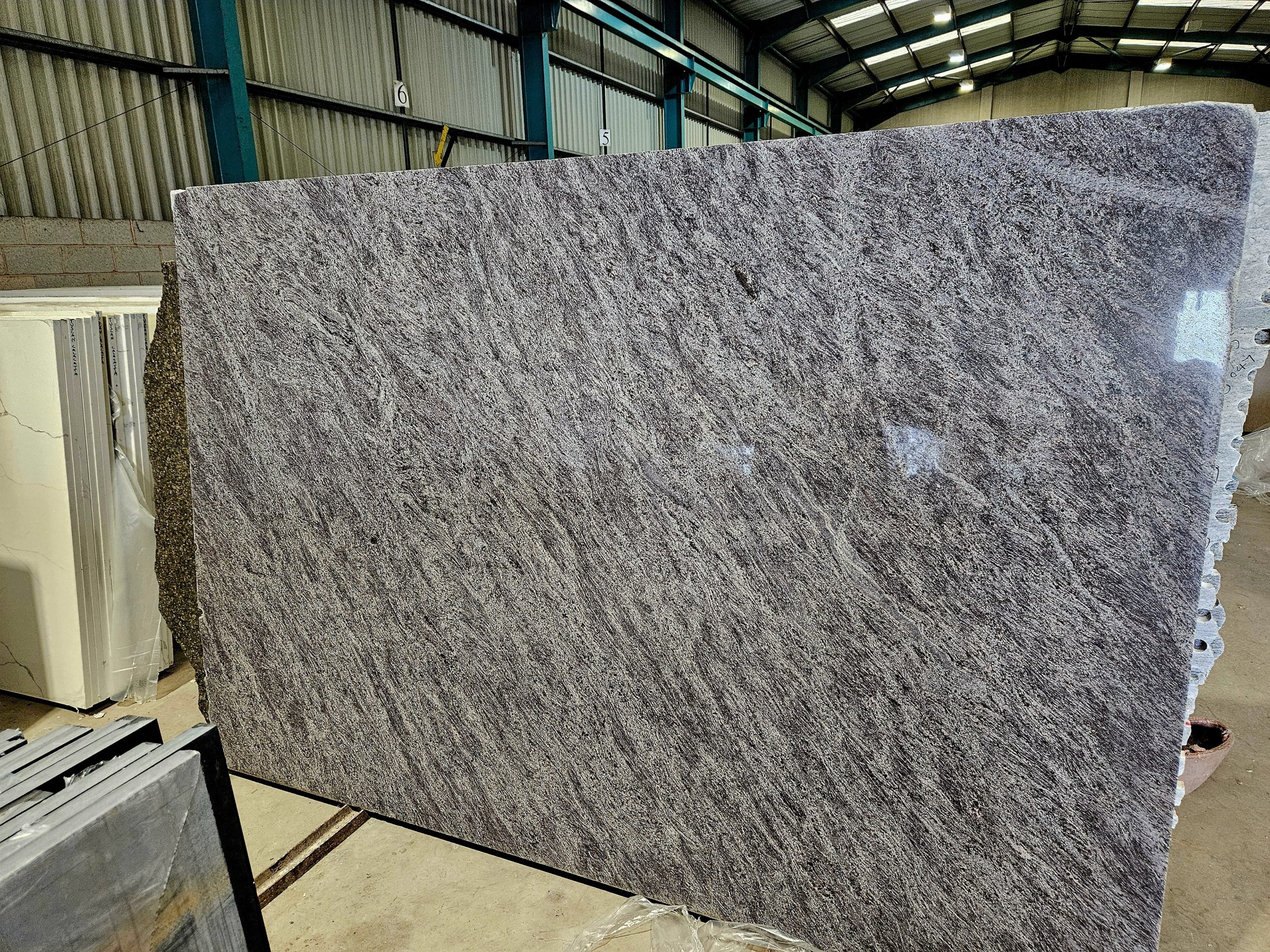 Vizag Blue: smoky blue-grey with vibrant, striking veins sweeping across the stone, this granite originates from India and is available in 20mm and 30mm.